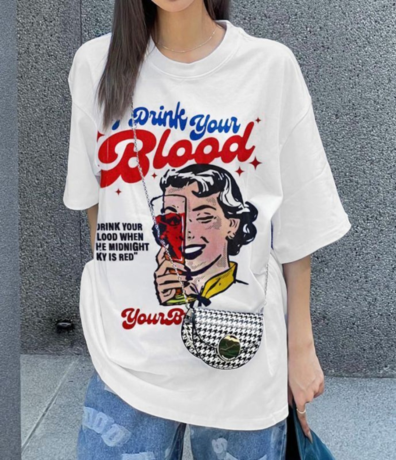 アメリカンレトロキャラクタープリント 半袖 Tシャツ 男女兼用
