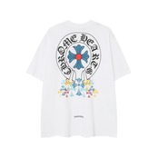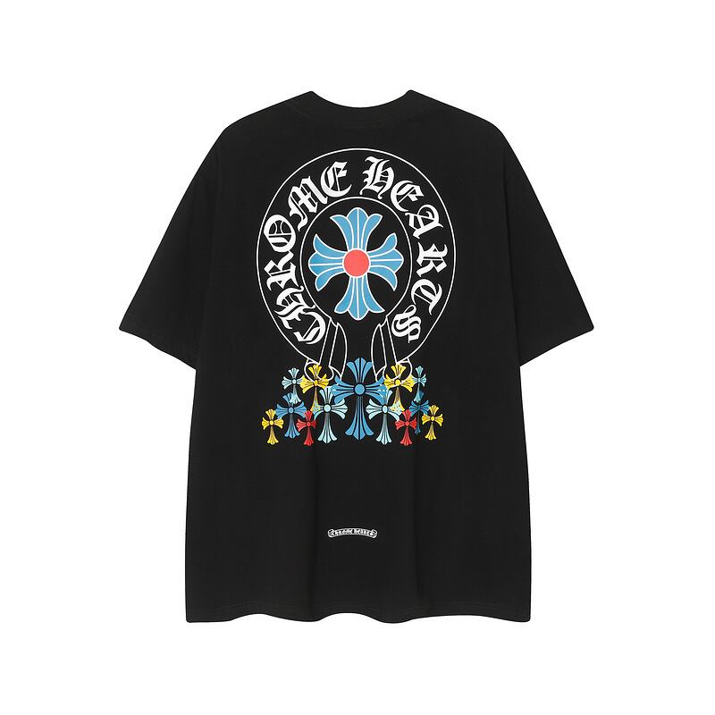カラフル クロス ロゴ Tシャツ 夏用 半袖 クルーネック トップス 男女兼用